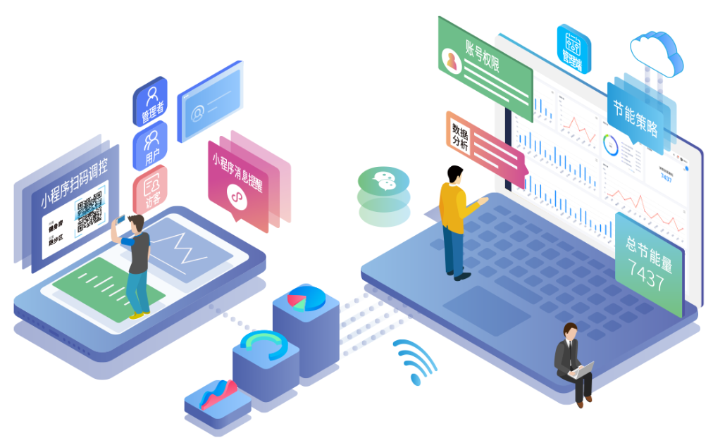 碳管家通过对楼宇水、电、气用量进行数字化分项计量,对楼宇空调、照明、新风和办公等设备使用时长实时采集,实现对建筑运行的碳排放自动化碳排查。通过碳排查指标以及楼宇的实际环境指标自动分析建筑节能潜力,对建筑空调、照明等设备运行管理策略进行不断优化,对楼宇分布式太阳能光伏和分布式储能利用进行合理分配。为后续参与虚拟电网负荷调控提供计算依据和结果。
